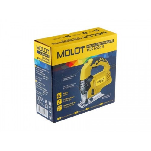 Лобзик электрический MOLOT MJS 6506 E в кор. 600 Вт, 0-3000 ход/мин, пропил до 65 мм (Быстрозажимной патрон, маятниковый ход, рег. об.)