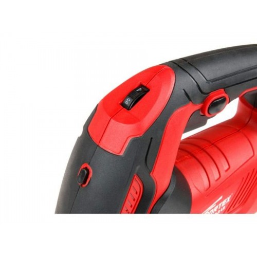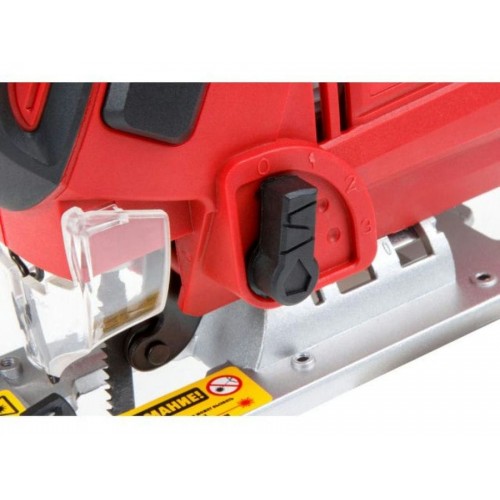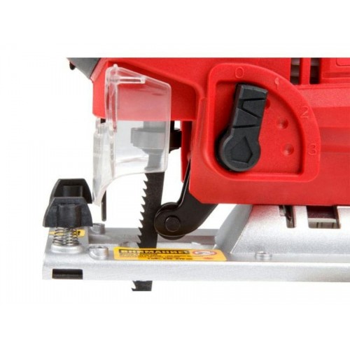 Лобзик оснащен удобной, эргономичной прорезиненной рукояткой, для быстрой замены пильных полотен предусмотрен быстрозажимной патрон, наличие маятникового движения с направляющим роликом, позволяет производить быстрые и при этом ровные пропилы. Литая алюминиевая подошва регулируется под разными углами. Возможно подключение пылесоса. Регулировка скорости позволяет использовать лобзик для реза различных материалов. Имеет отделение для хранения пильных полотен. Есть лазерный указатель и подсветка. Гарантийный срок - 2 года.