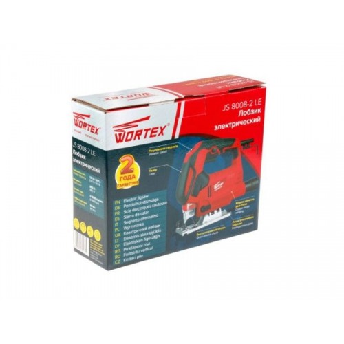 Лобзик электрический WORTEX JS 8008-2 LE в кор. 850 Вт, 0-3000 ход/мин, пропил до 80 мм. (Быстрозажимной патрон, маятниковый ход, рег. об., лазер, подсветка, литая платформа)
