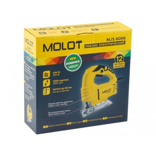 Лобзик электрический MOLOT MJS 6006 в кор. 550 Вт, 3000 ход/мин, пропил до 60 мм. (Быстрозажимной патрон)