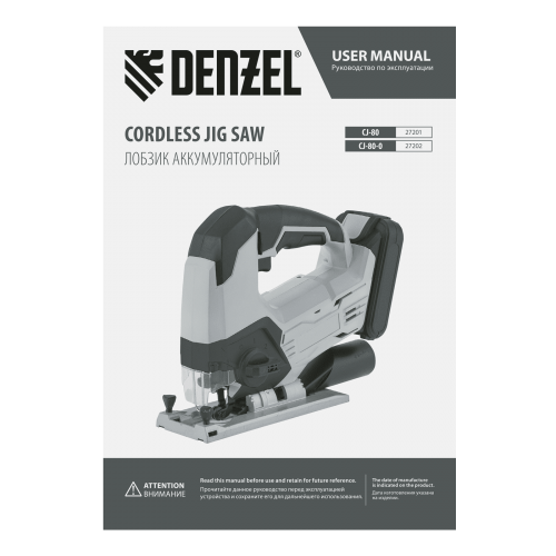 Лобзик аккумуляторный DENZEL CJ-80-0, 18В Li-Ion