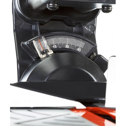 - Фиксирующийся в любом положении поворотный стол и удобная регулировка наклона облегчают установку угла пиления