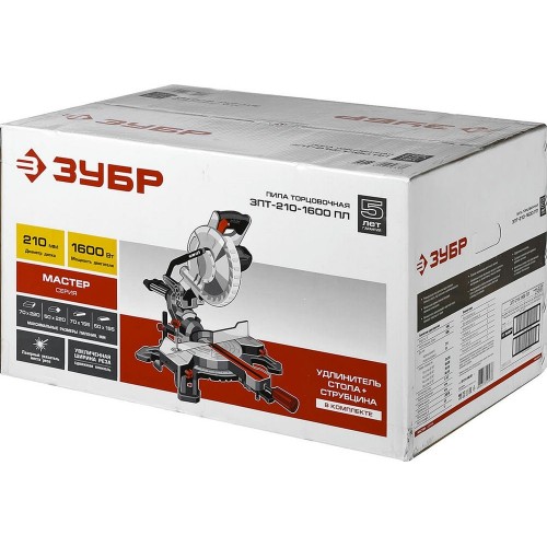 Пила торцовочная ЗУБР ЗПТ-210-1600 ПЛ, предназначена для быстрой и точной распиловки древесины. Пила имеет подвижную голову с лазерной подсветкой линии реза, которая позволяет точно разрезать древесину, пластик и тонкостенный алюминий (при установке соответствующих дисков). Широкие возможности благодаря увеличенному диаметру диска и различным видам пиления. Высокая точность реза благодаря выверенной конструкции. Увеличенная ширина пиления благодаря сдвижной голове диска. Фирменный диск с оптимальным количеством зубьев для качественной производительной работы. Лазерный указатель места реза облегчает работу. Струбцина в комплекте надежно фиксирует обрабатываемую заготовку. Бесступенчатый поворот стола с фиксированными положениями и удобная регулировка наклона. Удлинительные опоры стола предотвращают опрокидывание отпиленной заготовки и позволяют пилить более длинные детали. Мешок для сбора опилок и возможность подключения пылесоса способствуют более чистой работе.