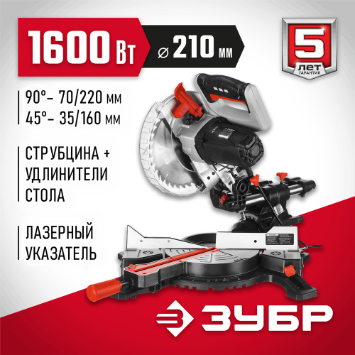 Пила с подвижной головой и лазерной подсветкой линии реза позволяет точно разрезать древесину, пластик и тонкостенный алюминий (при установке соответствующих дисков). Пила ЗУБР - достойный выбор и отличный помощник в работе