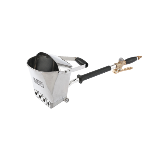Хоппер-ковш Denzel HB1 57438 емкостью 4 л подключается к компрессору при помощи шланга с внутренним диаметром 10 мм и расходует 350 л сжатого воздуха в минуту. Используется для нанесения штукатурных растворов, позволяя ускорить выполнение отделочных работ и повысить их качество. 4 больших выходных сопла обеспечивают эффективное решение поставленных задач. Инструмент пригодится на строительной площадке.