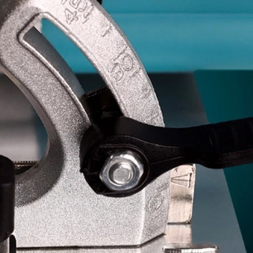 Скорость вращения оснастки достигает 5300 об/мин, обеспечивая ровный срез без заусенцев. Глубина и угол пропила регулируются при помощи удобных механизмов, без использования специальных инструментов. Параллельная направляющая дает возможность выполнять точные пропилы вдоль кромки заготовки и распиливать равные по размеру детали.