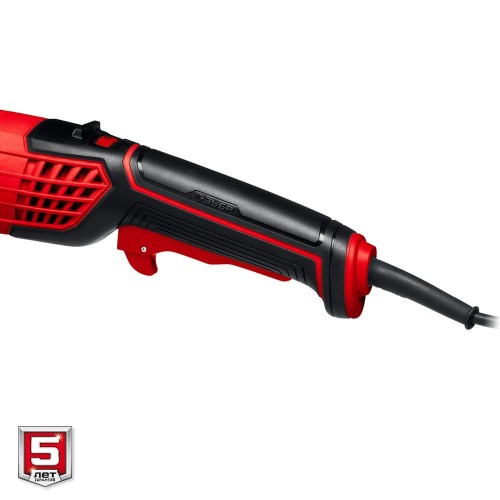 - Широкий эргономичный выключатель с пылезащитой, блокировкой непреднамеренного включения, а также фиксацией во включенном положении
