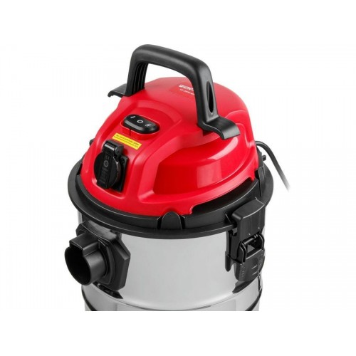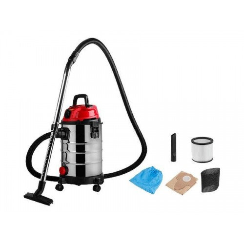 Компактный и надежный пылесос для сухой и влажной уборки, а также с дополнительной розеткой для работы с электроинструментом. В базовую комплектацию входит шланг 3 м , а так же электрический провод 4 м, для большего удобства в работе. Надежный и мощный двигатель 1400 Вт. Несколько степеней фильтрации обеспечивается за счет фильтра тонкой очистки (HEPA), который входит в комплект поставки. Возможно также использовать с одноразовыми бумажными мешками. Пылесос также оснащен специальным отверстием для слива воды из бака. А легкий и прочный корпус из нержавеющей стали обеспечит долгий срок службы инструмента. Присутствует функция выдува, а также телескопическая трубка. Обладает раздвижной телескопической трубкой и трехпозиционным переключателем. Шланг 3 м - 1 шт. Металлическая удлинительная трубка (телескопическая) - 1 шт. Щетка для пола - 1 шт. Щелевая насадка - 1 шт. Бумажный мешок - 1 шт. Фильтр HEPA - 1 шт. Поролоновый фильтр - 1 шт. Нетканый мешок - 1 шт. Колеса поворотные - 4 шт.