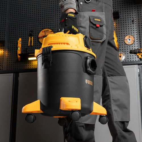 Строительный пылесос Denzel LVC20 28292 мощностью 1400 Вт, со шлангом длиной 3 м и баком объемом 20 л, оснащенный розеткой с автосинхронизацией, предназначен для уборки помещений: удаления бетонной, кирпичной пыли, а также для сбора воды. Высокоэффективный HEPA-фильтр задерживает мельчайшие загрязняющие частицы, предотвращая их попадание обратно в воздух. Возможность подключения электроинструмента обеспечивает удаление стружки, опилок, шлама, образующихся в процессе сверления, пиления, фрезерования. Пылесос пригодится для поддержания чистоты во время проведения строительных и ремонтных работ, будет полезен на складе, производстве и в гараже.