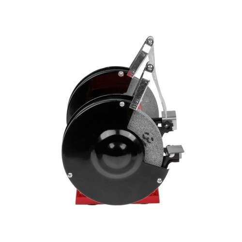 Точильный станок предназначен для заточки инструмента. Модель BG 1525-1 покрыта термостойкой краской, оснащена защитными щитками и металлическими кожухами для безопасного использования. Также, станок имеет устойчивое основание и пылезащищенный выключатель, а два установленных круга имеют разную зернистость (мелкую и крупную). Гарантийный срок - 2 года.