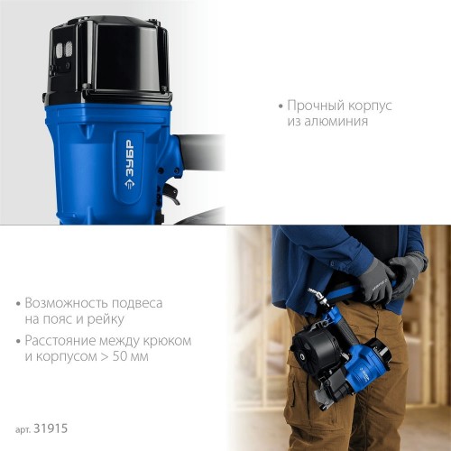 Пневматический нейлер для барабанных гвоздей ЗУБР CNW-100 (арт. 31915) применяется для производства паллет (поддонов) и других изделий, таких как тара, ящики и упаковка.