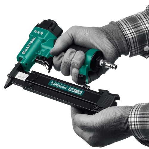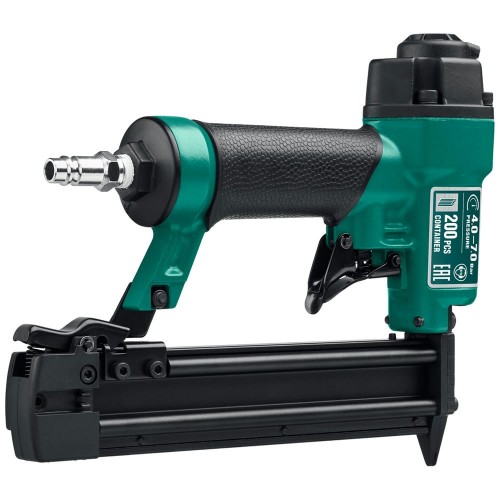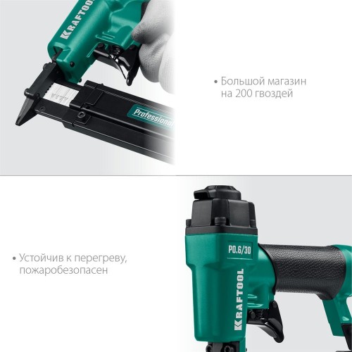 Нейлер (гвоздезабиватель) пневматический для шпилек KRAFTOOL 31963, предназначен для финишного крепления материалов с помощью шпилек Р0.6. Литой алюминиевый корпус. Обрезиненная рукоятка для удобства хвата. Простота в использовании. Устойчив к перегреву, пожаробезопасен. Низкое потребление воздуха на удар. Большой магазин на 200 гвоздей.