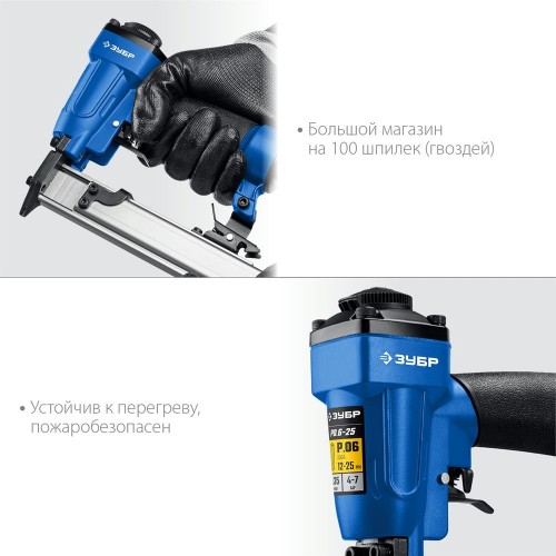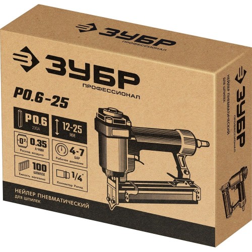 Нейлер (гвоздезабиватель) пневматический ЗУБР 31936, предназначен для крепления материалов с помощью шпилек Р0.6. Литой алюминиевый корпус. Обрезиненная рукоятка для удобства хвата. Простота в использовании. Устойчив к перегреву, пожаробезопасен. Низкое потребление воздуха на удар. Обрезиненная рукоятка для удобства хвата. Большой магазин на 100 гвоздей.