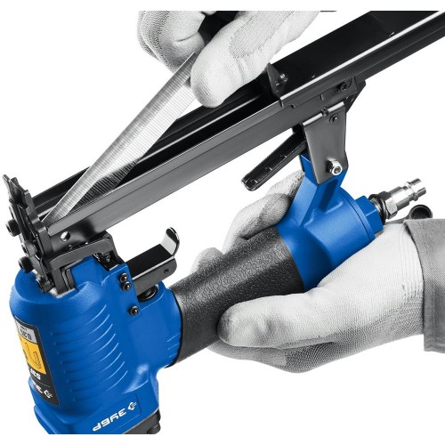 Профессиональный пневматический скобозабиватель. Произведен из высококачественных материалов, позволяет быстро и эффективно выполнить свою работу.