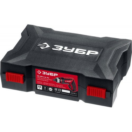 Отвертка аккумуляторная ЗУБР ЗО-ЕМ-3.6 Ли, предназначена для заворачивания (отворачивания) винтов, саморезов, шурупов. Многофункциональная отвертка с изменяемыми положениями рукоятки и регулировкой крутящего момента. Компактная отвертка с эргономичным дизайном и широким набором функций. Литий-ионная технология ЗУБР нового поколения. Трансформируемый корпус для удобного хвата при любой работе. Планетарный редуктор имеет больший КПД и надежнее обычных редукторов, а также обеспечивает высокий крутящий момент на выходе. Регулировка крутящего момента позволяет выбрать оптимальную силу закручивания для любого крепежа. Быстрозажимной патрон с фиксатором. Подсветка рабочего места способствует дополнительному удобству при работе в условиях недостаточного освещения. Блокировка шпинделя обеспечивает возможность доворачивания крепежных изделий вручную. Реверс. Рукоятка с противоскользящей накладкой. Удобный металлический кейс с набором востребованных бит в комплекте.