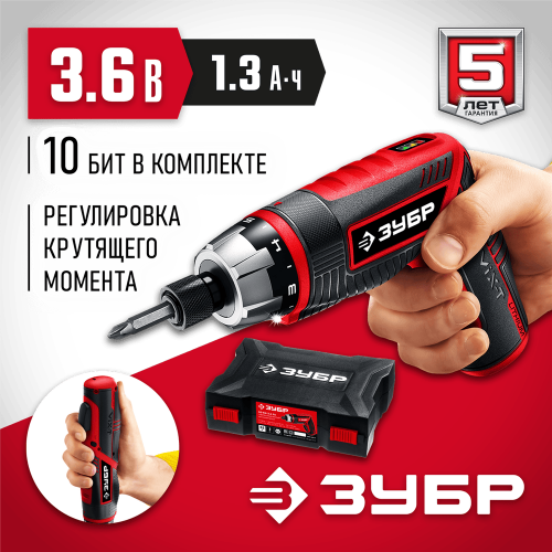Инструмент для заворачивания/отворачивания крепежа с Li-Ion аккумулятором - незаменимый помощник в быту. Многофункциональность, мощность, удобство в эксплуатации, легкая замена инструмента, встроенная подсветка, настройка и трансформация под любой режим работы, большой набор сменного инструмента - неоспоримые преимущества отвертки ЗУБР
