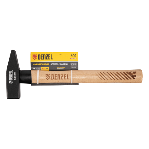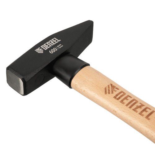 Молоток слесарный DENZEL 600 г, кованый квадратный боек, буковая рукоятка