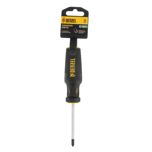 Отвертка DENZEL PZ1x75 мм, CrV, трехкомпонентная рукоятка