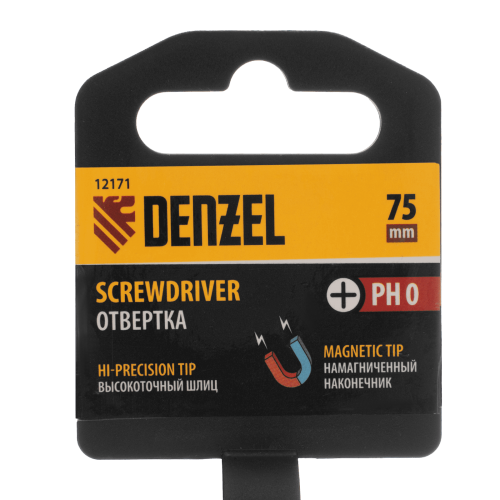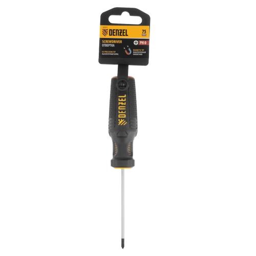 Отвертка DENZEL PH0х75 мм, CrV, трехкомпонентная рукоятка