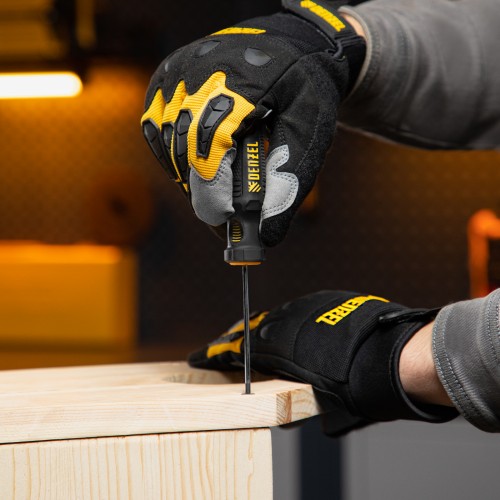 Отвертка PH0 х 75 мм Denzel 12171 из стали CrV, с трехкомпонентной рукояткой, предназначена для закручивания и откручивания резьбовых крепежей типа Philips. Шлиц намагничен, что избавляет от необходимости придерживать винт или саморез рукой. Отвертка рекомендована для профессионального использования.