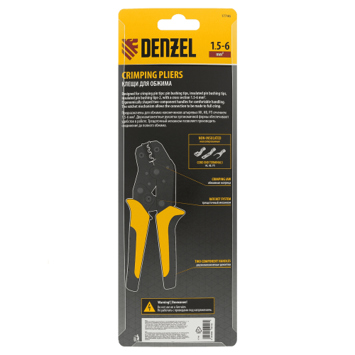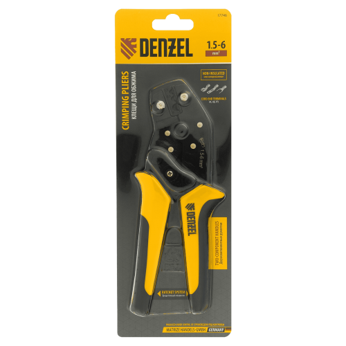 Клещи для обжима неизолированных наконечников DENZEL НК и НВ, разъемов РП, 1,5 - 6 мм2