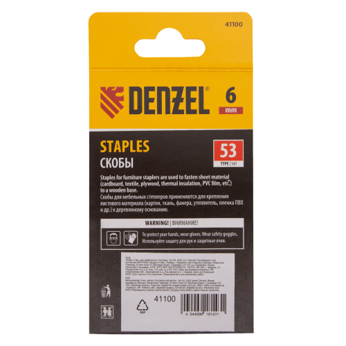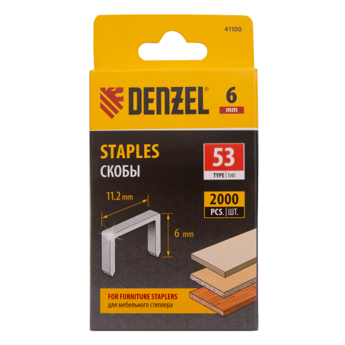 Скобы для мебельного степлера DENZEL 41100, 6 мм, тип 53, 2000 шт.