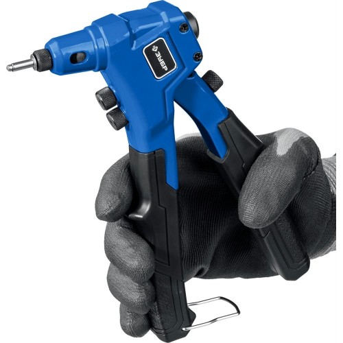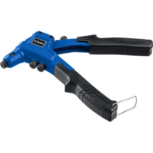 Применяется для установки вытяжных заклепок. Используется с нержавеющими заклепками 2.4, 3.2 мм, стальными заклепками 2.4, 3.2, 4.0 мм, алюминиевыми заклепками 2.4, 3.2, 4.0, 4.8 мм Способ применения: 1. Просверлите отверстие 2. Установите заклепку в заклепочник, а затем в отверстие 3. Сжимайте и разжимайте рукоятки заклепочника до момента откусывания хвостовика заклепки 4. Заклепка установлена