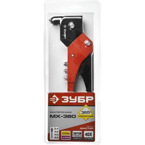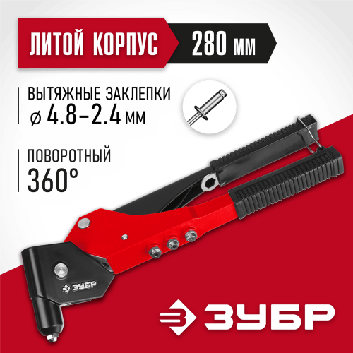 Заклепочник ЗУБР 31191_z01, предназначен для создания неразъемных соединений из различных материалов. Поворотная головка (360 град.) облегчает работу в труднодоступных местах. Губки из закаленной стали 40X обеспечивают высокий ресурс работы.