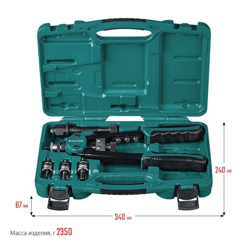 - Комбинированный двуручный заклепочник работает с двумя видами заклепок - вытяжными и резьбовыми