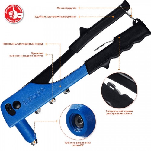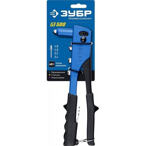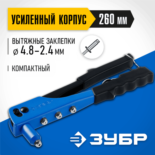 ЗУБР заклепки 2.4-4.8 мм - алюминий и сталь, 2.4-4.0 мм - нерж. сталь, стальной корпус, заклепочник 31190_z01 Профессионал