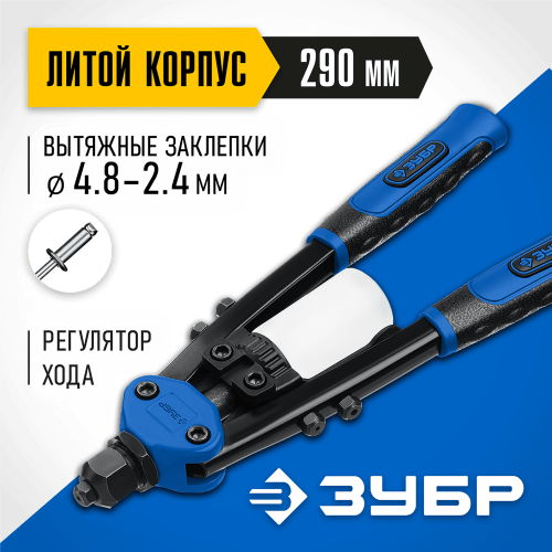 Профессиональный инструмент для установки вытяжных заклепок. Двуручная конструкциия существенно экономит время и силы.