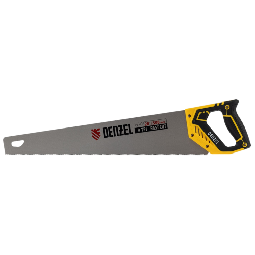 Ножовка по дереву DENZEL 500 мм, 9 TPI, зуб 3D, двухкомпонентная рукоятка