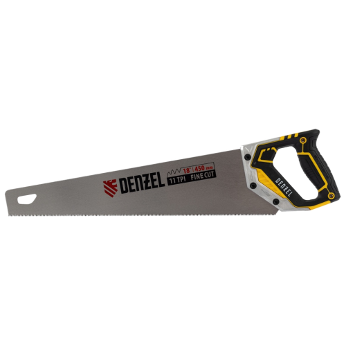 Ножовка по дереву DENZEL 450 мм, 11 TPI, зуб 3D, металлопластиковая рукоятка