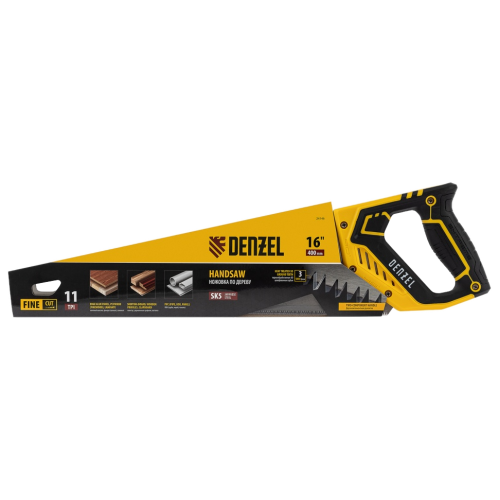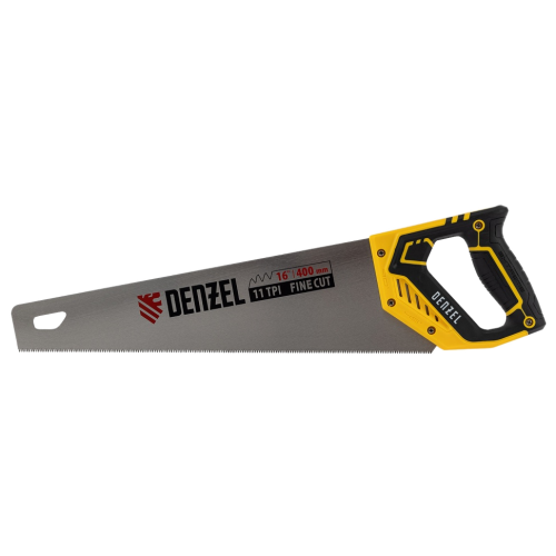 Ножовка по дереву DENZEL 400 мм, 11 TPI, зуб 3D, двухкомпонентная рукоятка