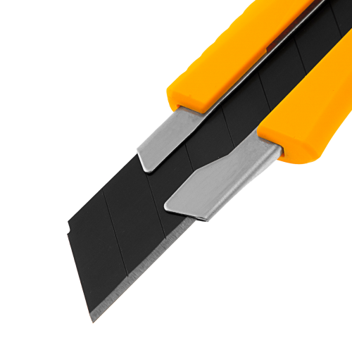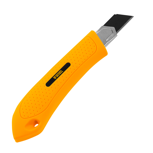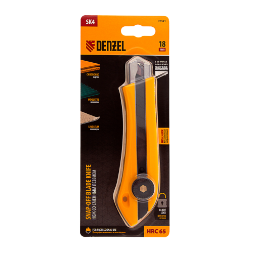 Нож DENZEL 18 мм, сменное лезвие, SK4, метал. направляющая, винтовой фиксатор