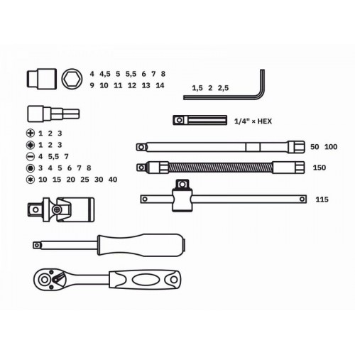 + Головка с насадкой TORX 14: T10, T15, T20, T25, T30, T40;