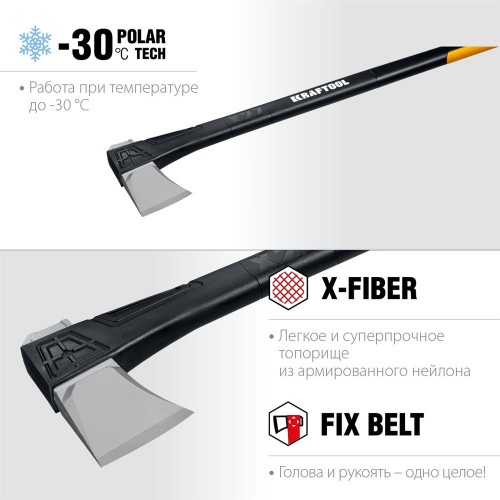 Колун финского типа с рукояткой из армированного нейлона X-Fiber с технологией фиксации головы FixBelt и морозоустойчивой технологией PolarTech - профессиональный инструмент для рубки, колки и тески древесины при агрессивных погодных условиях, морозоустойчивость до -30С