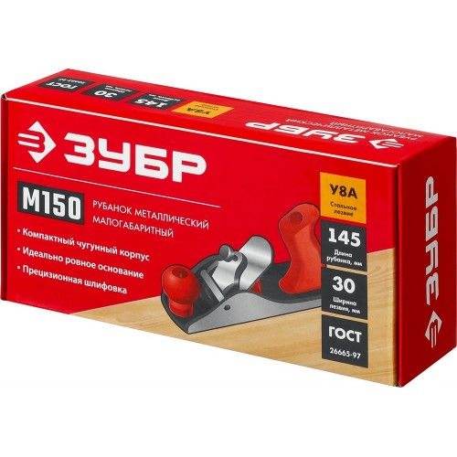 Рубанок ЗУБР 18501-15_z02, предназначен для чистового ручного строгания древесины различных пород, а также для строгания торцов заготовок или торцов деталей в собранных изделиях (рамках, коробках и др.) Лезвие из высококачественной стали марки У8А по ГОСТ 1435 закалено до HRC 53–63, обеспечивает длительный срок службы и возможность многократной доводки лезвия.