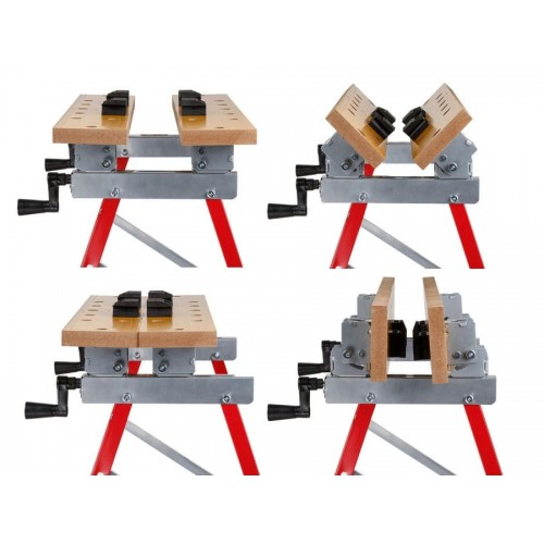 ■ Наклон столешниц на 45 и 90 градусов.Многофункциональное устройство для облегчения обработки различных заготовок. Столешница состоит из двух частей, которые поворачиваются на фиксированные углы 45 и 90 градусов, что делает возможным фиксацию круглых заготовок, так же имеется функция тисков. Верстак легко хранить и перевозить, благодаря складной конструкции. Предусмотрены отверстия в столешнице для надежной фиксации заготовок. Возможно использовать для закрепления инструмента. Атмосферостойкое покрытие металлических частей. Имеет надежную металлическую конструкцию выдерживающую равномерную нагрузку в 150кг !
