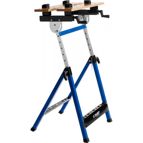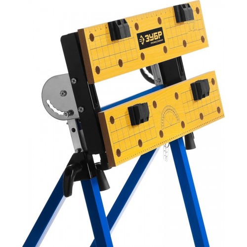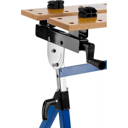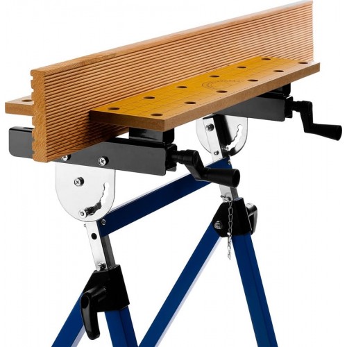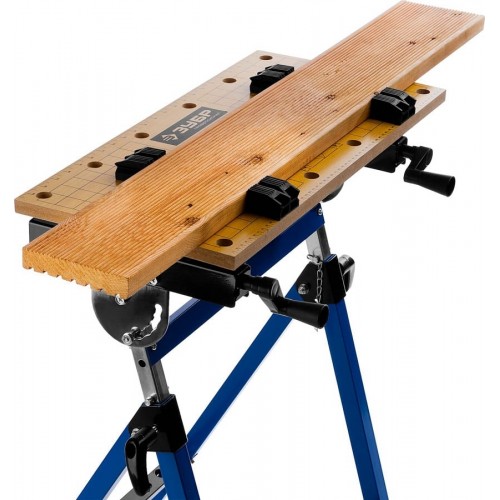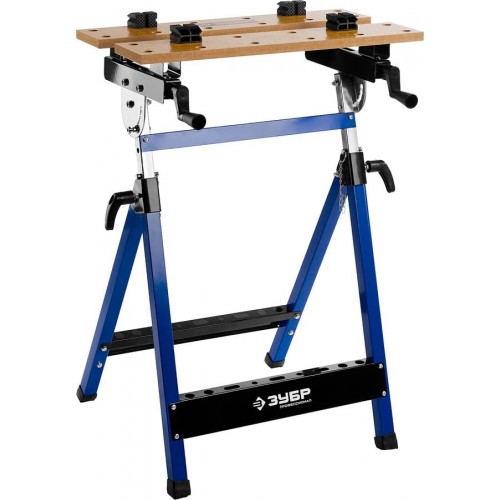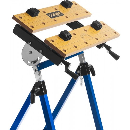 Незаменимый помощник в мастерской, в гараже и в домашних условиях. Предназначен для проведения столярных работ. Благодаря складному каркасу удобен в хранении и транспортировке. Столешница состоит из статической и подвижной части, фиксируемой двумя вращающимися ручками. Для удобства в работе столешница оснащена отверстиями и фиксаторами заготовок любой формы.