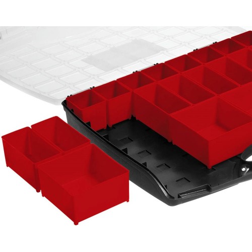 Съемные лотки органайзера позволяют организовать удобное хранение и переноску принадлежностей к ниструментам