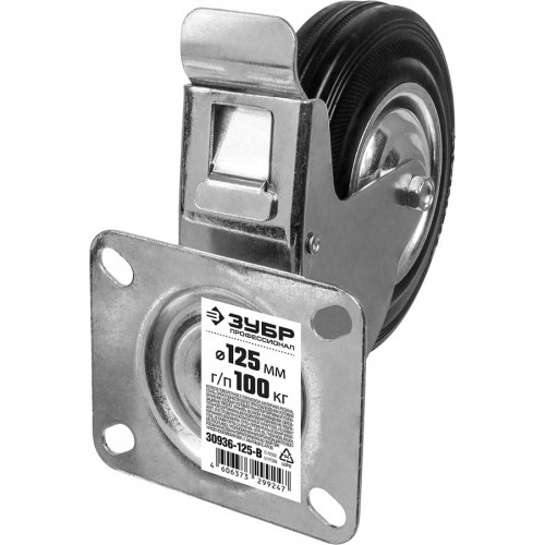 ЗУБР 125 мм, 100 кг, колесо поворотное c тормозом 30936-125-B Профессионал