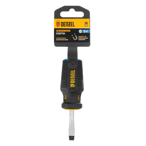 Отвертка DENZEL SL6x38 мм, CrV, трехкомпонентная рукоятка