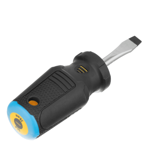 Отвертка SL6 х 38 мм Denzel 12201 из стали CrV, с трехкомпонентной рукояткой, используется для монтажа и демонтажа винтов и саморезов с прямым шлицем Slotted. Намагниченный шлиц крепко фиксируется в головке крепежа. Отвертка выдерживает интенсивное применение и предназначена для выполнения профессиональных ремонтных и монтажных работ.