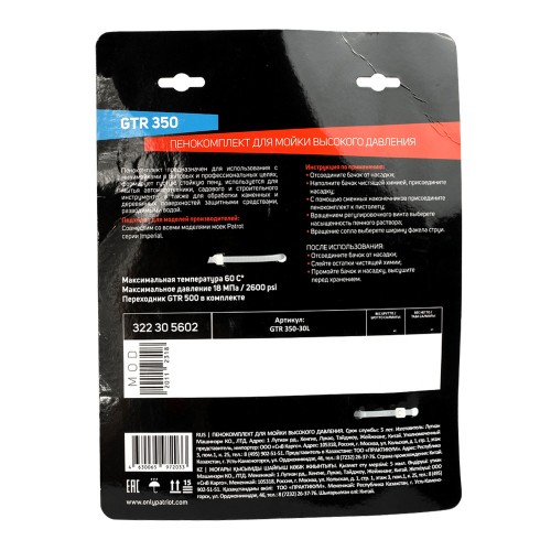 Пенокомплект PATRIOT GTR 350 (переходник GTR 500 в комплекте)