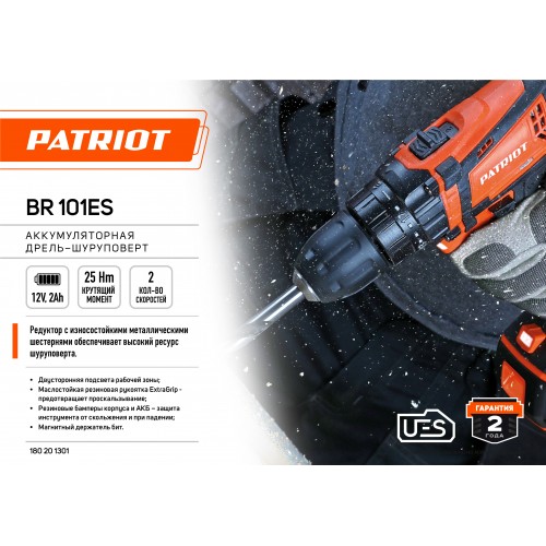 • Дрель-шуруповерт аккумуляторная PATRIOT BR 101 ES