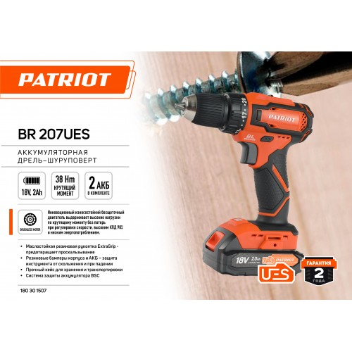 Дрель-шуруповерт бесщеточная аккумуляторная PATRIOT BR 207 UES