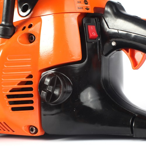 Надежный 2Т двигатель c экономным расходом топлива и пониженным выбросом выхлопных газов, сбалансированная конструкция обеспечат удобство при эксплуатации и точный распил. Боковой натяжитель цепи позволит оператору контролировать натяжение цепи.