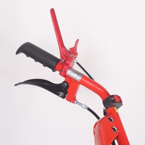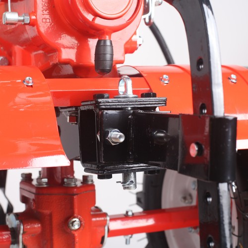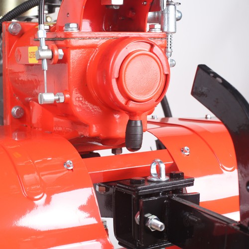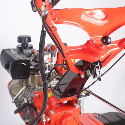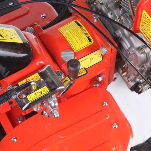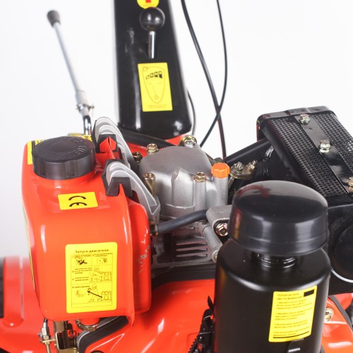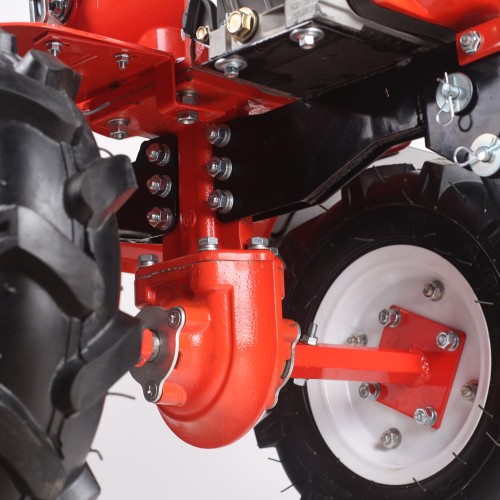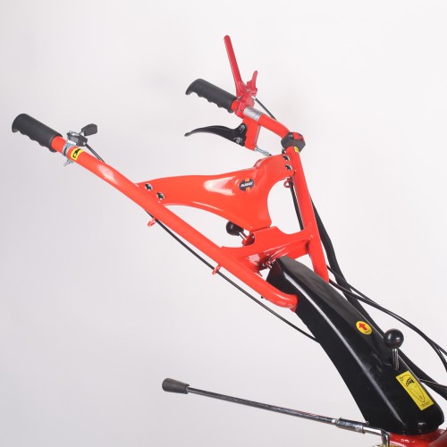 Мощность 6 л,с, PG, 900 mm, фрезы закаленные ,специальная конструкция алюминиевой коробки передач 2 вперед+ 1 назад, поворотная ручка 360 градусов, шестеренчатый редуктор в маслянной ванне, ВОМ для подключения высоконапорной помпы, разборные крылья, пневматические колеса тип 4.00-8 D 420/110 mm,ширина колесной базы 550 mm, шестигранный вал 23 мм, фара, повротное 4-х позиционное регулируемое рулевое управление по высоте, 10 по горизонтали, 96 кг