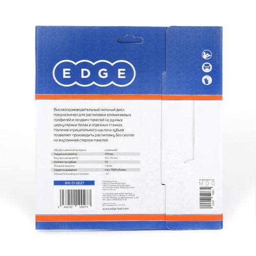 Наружный диаметр 210мм, кол-во зубьев 72, посадочное отверстие 30мм,20мм пильный диск для циркулярной или отрезной пилы с твердосплавными напайками, специально заточенными для распиловки алюминия. Отрицательный наклон зубьев позволяет производить распил без сколов на лицевой поверхности.